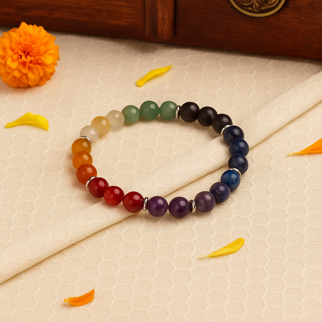 7 Chakra Bracelet is a vibrant spiritual accessory made with seven natural stones, each representing a chakra, believed to balance energy, enhance harmony, and support overall well-being.
